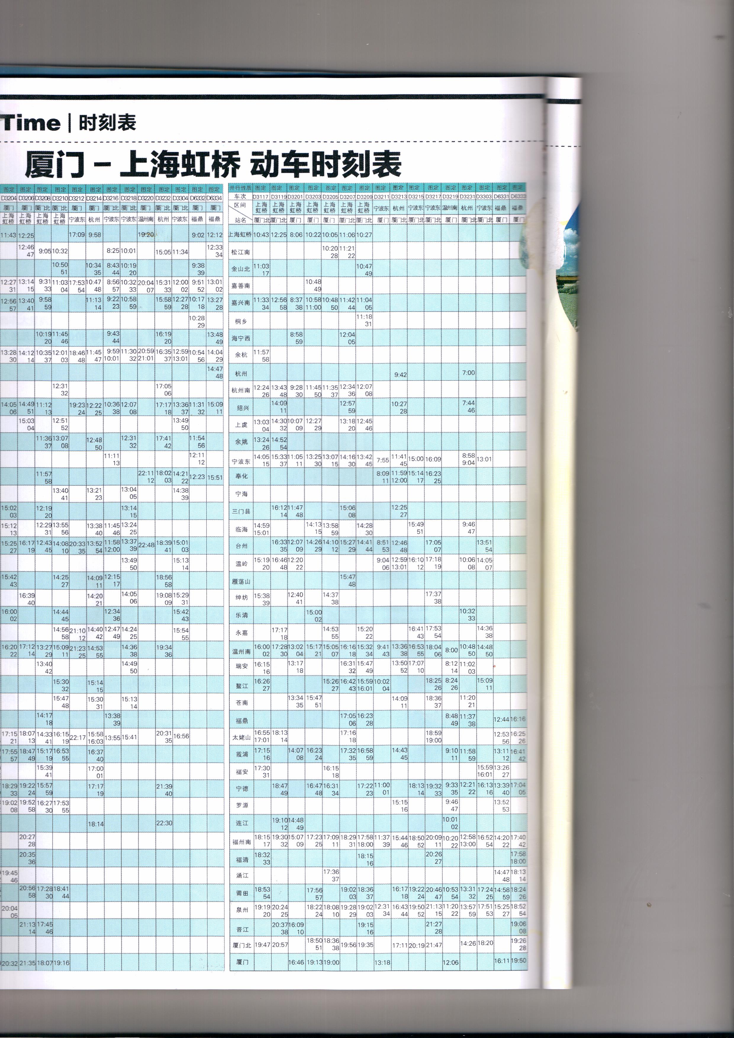 上海以南杭州台州温州等城市直达莆田的动车时刻表